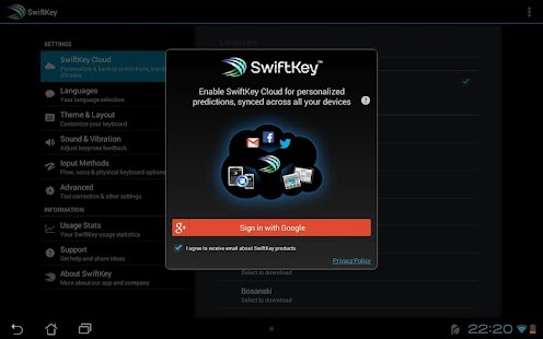 We take your privacy very seriously. This keyboard never learns from password fields. SwiftKey Cloud is an opt-in, secure, encrypted service and gives you full control over your data. Internet connection permission is required to install this app, so that language module files and cloud personalization data can be downloaded.