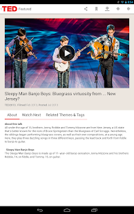 TED's official Android app presents talks from some of the world's most fascinating people: education radicals, tech geniuses, medical mavericks, business gurus, and music legends. Find more than 1700 TEDTalk videos and audios (with more added each week) on the official TED app -- now for tablets and smartphones.