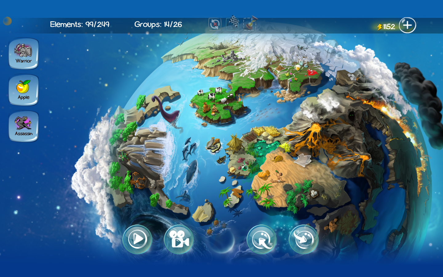 a simple microorganism to create animals, tools, storms and even build armies